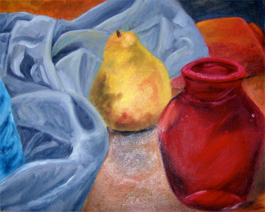 Pear and Vase. Oil Painting.