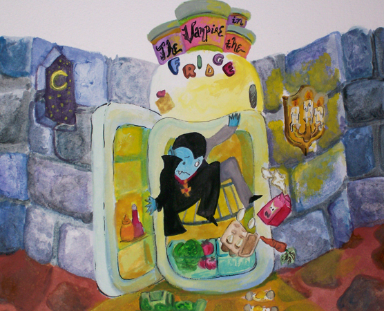 The Vampire in the Fridge. Watercolour Book Cover Design.
