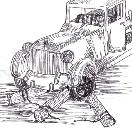 The Mysterious Pick-Up Truck. Book Illustration.