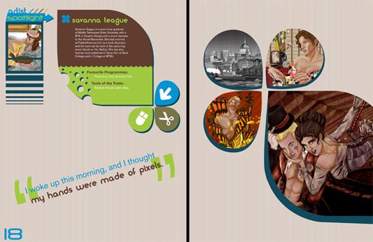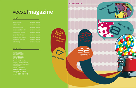 My Senior Project was called Vexcel, a hypothetical magazine seeking to unite illustrators who use both vector and raster programs to create art.